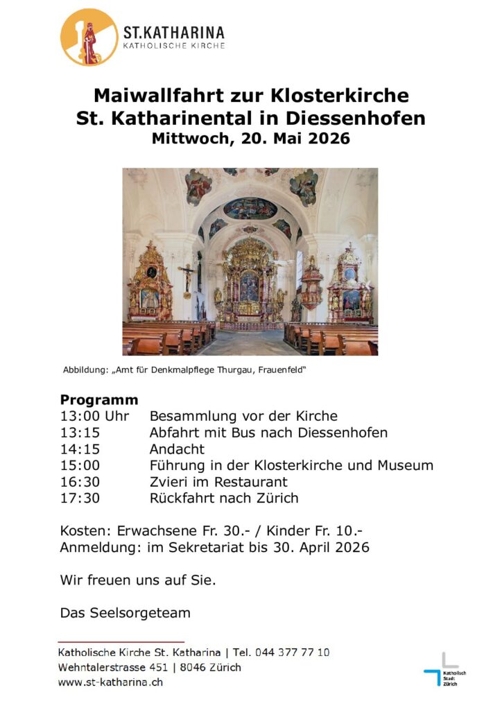 26. bis 3.05.2026: Pfarreireise nach Polen. Weitere Infos und Anmeldung gibt es hier.